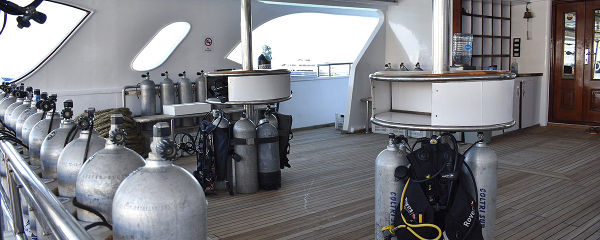 | Diving: | 32 x 12 Liter aluminium tanks 3 x D12 Liter steel tanks With extra charge and advance booking: 15 l steel tanks |